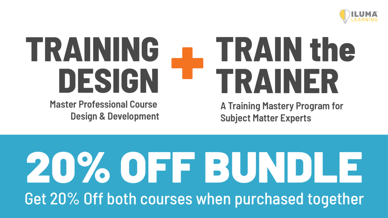 Receive 20% off both courses when you purchase the Training Design course and the Train the Trainer course together.